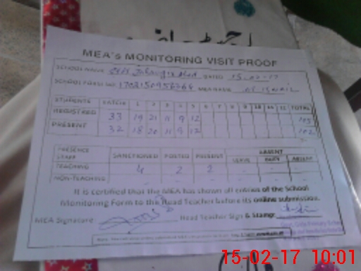 | Attendance Register | Head Teacher | MEA with School | Visit Proof |