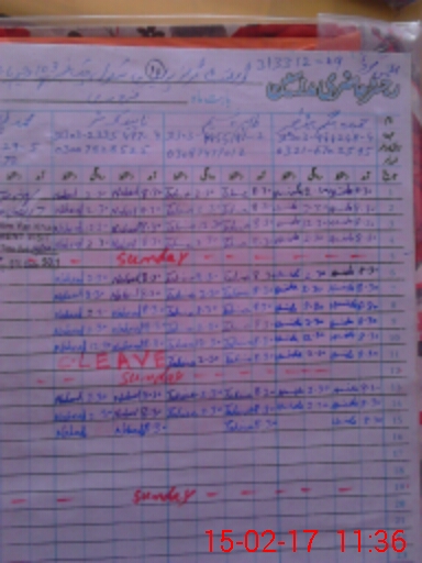 | CNIC | Full Name | Designation | R/C | Absence During Last Calender Month |