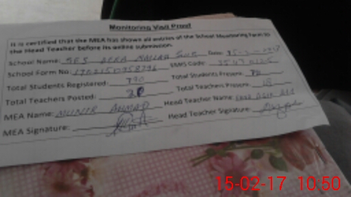 | Attendance Register | Head Teacher | MEA with School | Visit Proof |