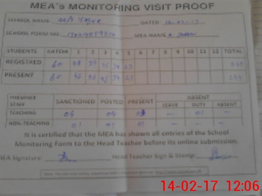 | Certified that this School was Inspected by the Undersigned MEA/DMO Today and the Information Stated Above is as Per Record. | |||||