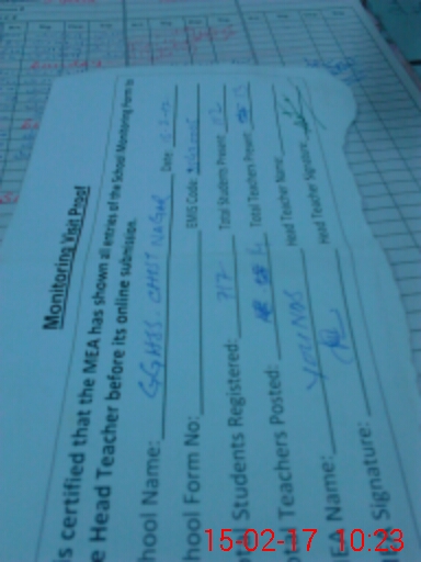| Attendance Register | Head Teacher | MEA with School | Visit Proof |