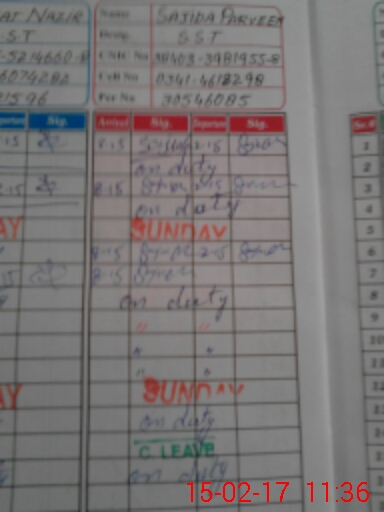 | 38**** | Fa**** Na**** | S.S.T.(GENERAL) | 0 | 0 | 0 | 0 | 0 | 0 | 0 | 0 | 0 | Exam Duty | |