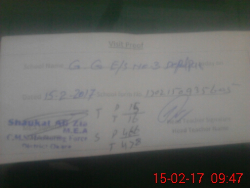 | Attendance Register | Head Teacher | MEA with School | Visit Proof |