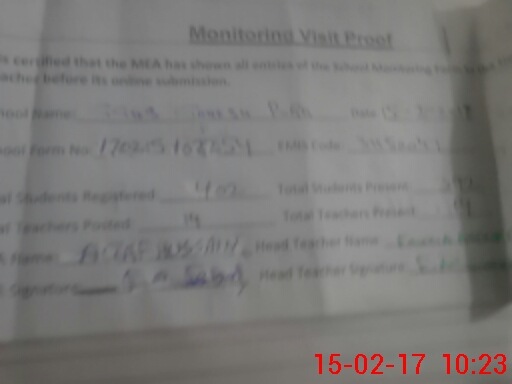 | Certified that this School was Inspected by the Undersigned MEA/DMO Today and the Information Stated Above is as Per Record. | |||||