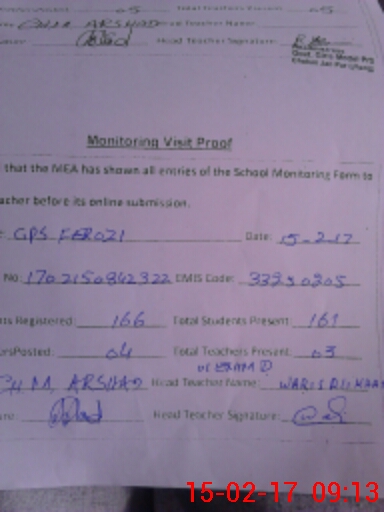 | EMIS Code: 33250205 | Name of School: GPS FEROZI | |||