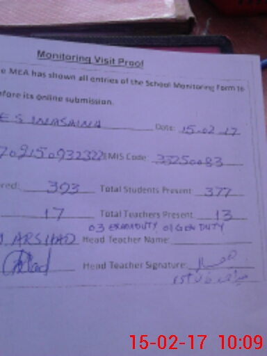 | Certified that this School was Inspected by the Undersigned MEA/DMO Today and the Information Stated Above is as Per Record. | |||||