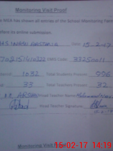 | Certified that this School was Inspected by the Undersigned MEA/DMO Today and the Information Stated Above is as Per Record. | |||||