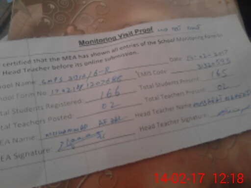 | Certified that this School was Inspected by the Undersigned MEA/DMO Today and the Information Stated Above is as Per Record. | |||||