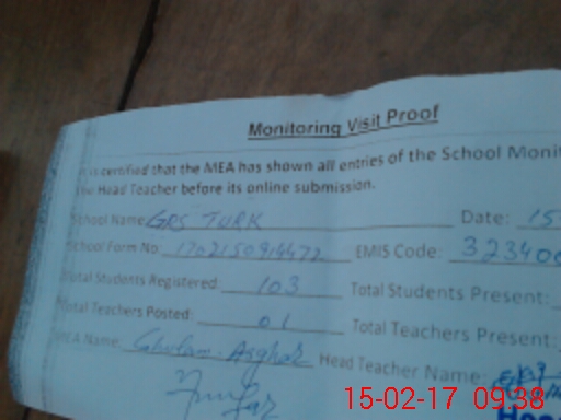 | Attendance Register | Head Teacher | MEA with School | Visit Proof |