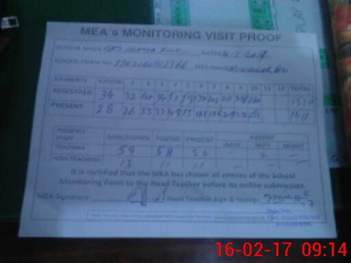 | Attendance Register | Head Teacher | MEA with School | Visit Proof |