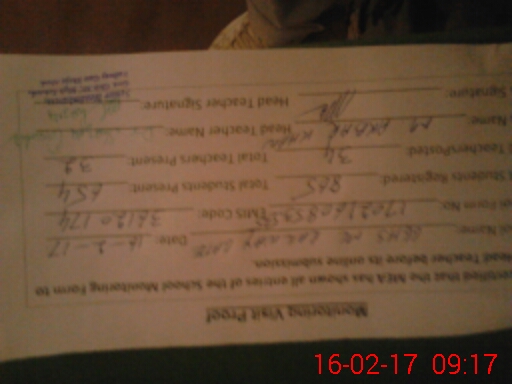 | Name: AY**** SU**** Designation: (School Headmaster's/Headmistress's) SNR HEAD MISTRESS Phone/Cell Number: 03**** |