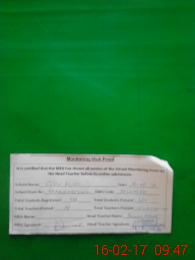 | Attendance Register | Head Teacher | MEA with School | Visit Proof |
