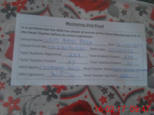 | EMIS Code: 35430715 | Name of School: GGPS NABI PURA | |||