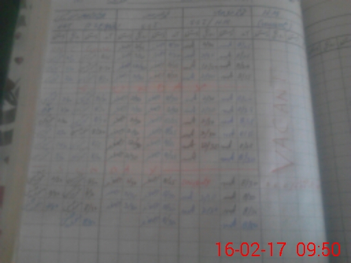 | Monitoring Date: 16-02-2017 | Start Time: 16-02-2017 09:01 AM | End Time: 16-02-2017 09:51 AM | Name of MEA: SH**** AL**** ZI**** (R**** | |