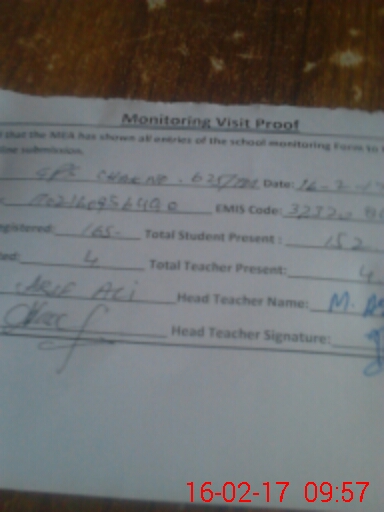 | Attendance Register | Head Teacher | MEA with School | Visit Proof |