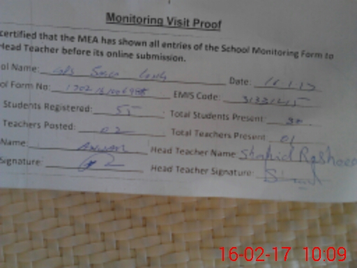 | Certified that this School was Inspected by the Undersigned MEA/DMO Today and the Information Stated Above is as Per Record. | |||||