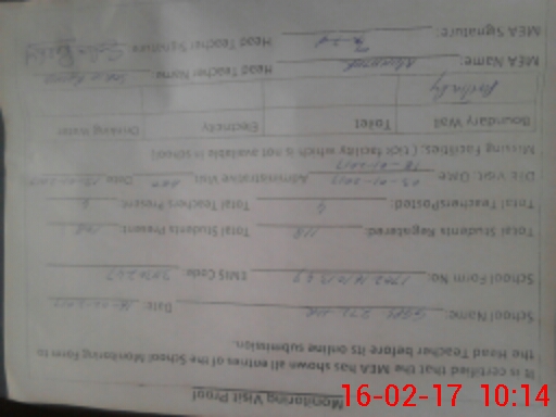 | Certified that this School was Inspected by the Undersigned MEA/DMO Today and the Information Stated Above is as Per Record. | |||||