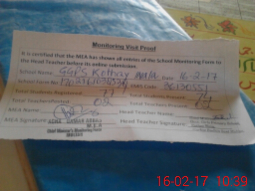 | EMIS Code: 36130551 | Name of School: GGPS KOTHAY WALA | |||