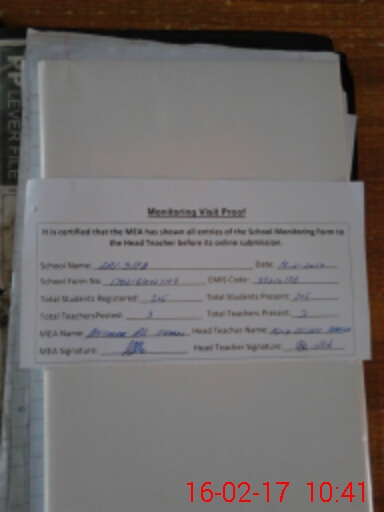 | Attendance Register | Head Teacher | MEA with School | Visit Proof |