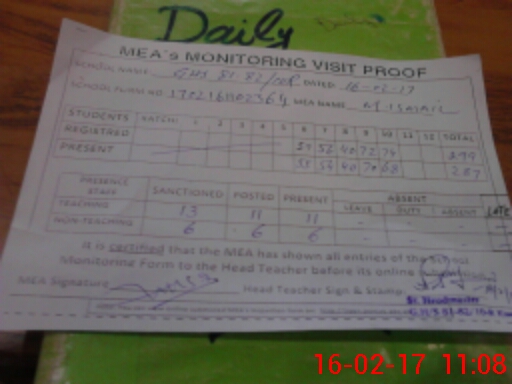 | Attendance Register | Head Teacher | MEA with School | Visit Proof |
