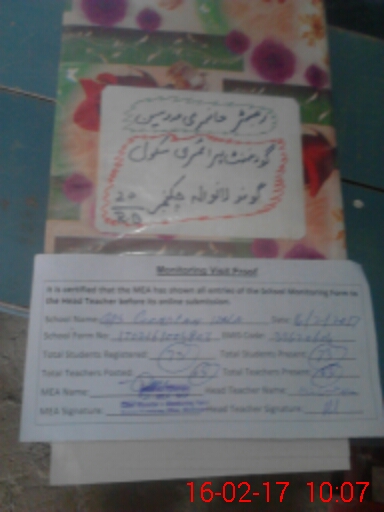 | EMIS Code: 35620604 | Name of School: GPS GONDLAWALA CHAK 20 RB | |||
