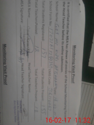 | Attendance Register | Head Teacher | MEA with School | Visit Proof |
