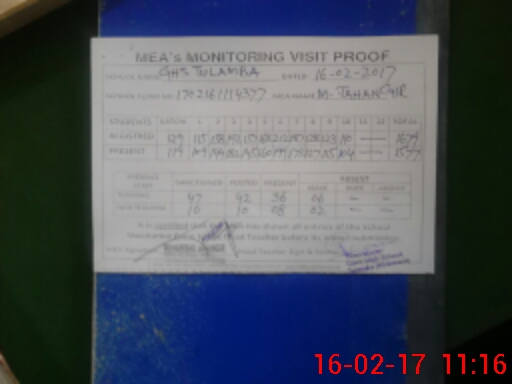 | Monitoring Date: 16-02-2017 | Start Time: 16-02-2017 09:56 AM | End Time: 16-02-2017 11:20 AM | Name of MEA: Mu**** Ja**** | |