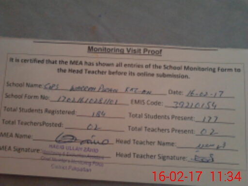 | EMIS Code: 39210154 | Name of School: GPS WARRA PIRAN KALAN | |||