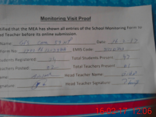 | Certified that this School was Inspected by the Undersigned MEA/DMO Today and the Information Stated Above is as Per Record. | |||||