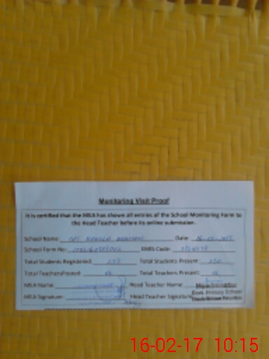 | Attendance Register | Head Teacher | MEA with School | Visit Proof |