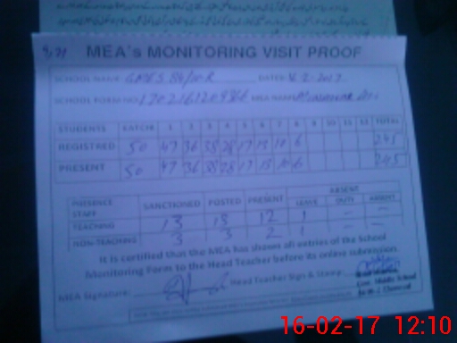 | Certified that this School was Inspected by the Undersigned MEA/DMO Today and the Information Stated Above is as Per Record. | |||||