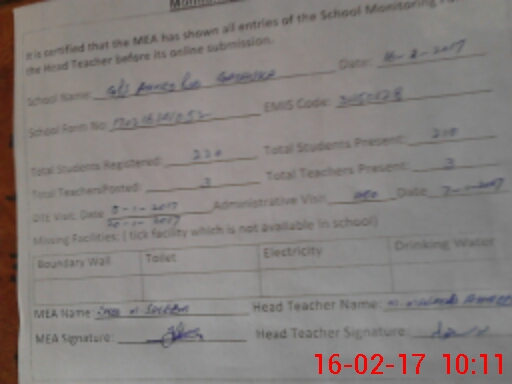 | Certified that this School was Inspected by the Undersigned MEA/DMO Today and the Information Stated Above is as Per Record. | |||||