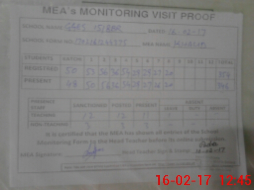 | Certified that this School was Inspected by the Undersigned MEA/DMO Today and the Information Stated Above is as Per Record. | |||||