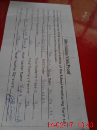 | Certified that this School was Inspected by the Undersigned MEA/DMO Today and the Information Stated Above is as Per Record. | |||||