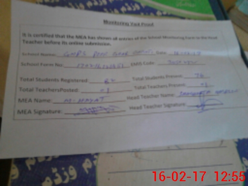 | EMIS Code: 31150272 | Name of School: GMPS PIR GHAR CHISHTI | |||