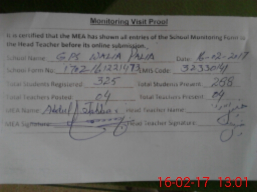 | EMIS Code: 32330141 | Name of School: GPS WALIA PALIA | |||