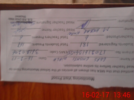 | Name: Sa**** Pa**** Designation: (School Headmaster's/Headmistress's) HM Phone/Cell Number: 03**** |