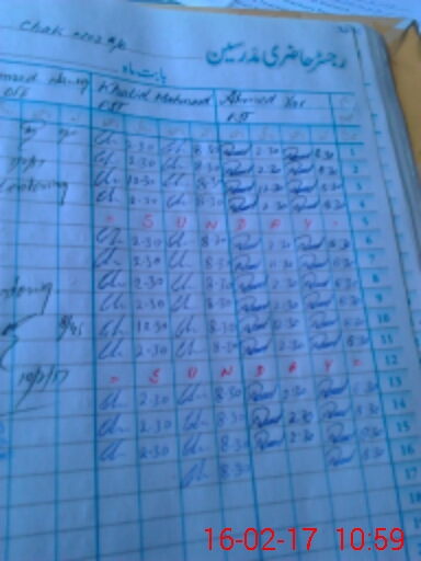 | CNIC | Full Name | Designation | R/C | Absence During Last Calender Month |
