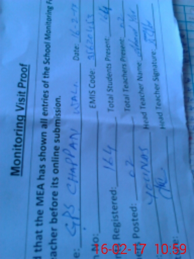 | EMIS Code: 35620453 | Name of School: GPS CHHAPAN WALI | |||