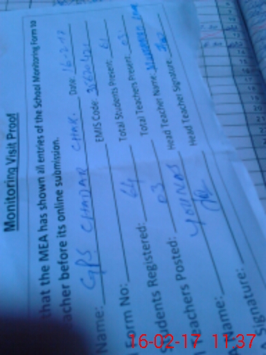 | Attendance Register | Head Teacher | MEA with School | Visit Proof |