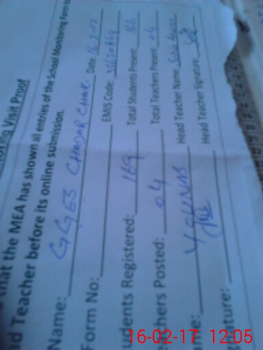 | EMIS Code: 35620849 | Name of School: GGES CHADAR CHAK | |||