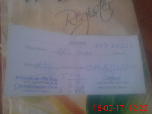 | Attendance Register | Head Teacher | MEA with School | Visit Proof |