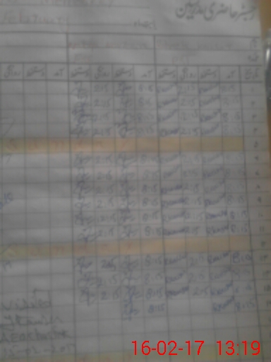 | CNIC | Full Name | Designation | R/C | Absence During Last Calender Month |