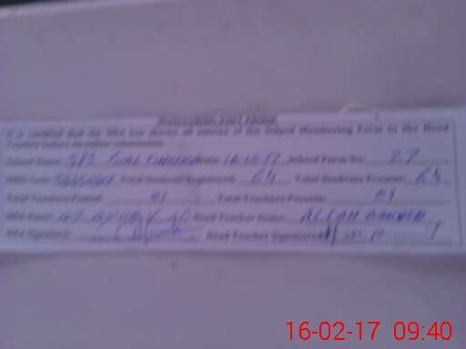 | Attendance Register | Head Teacher | MEA with School | Visit Proof |