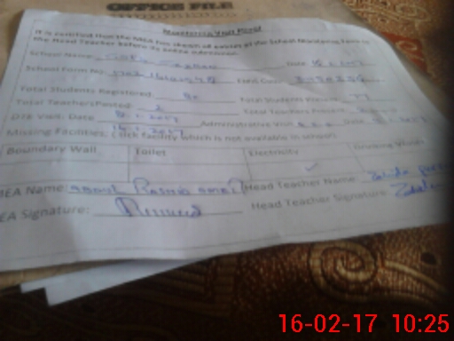 | Attendance Register | Head Teacher | MEA with School | Visit Proof |