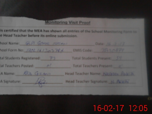 | Attendance Register | Head Teacher | MEA with School | Visit Proof |