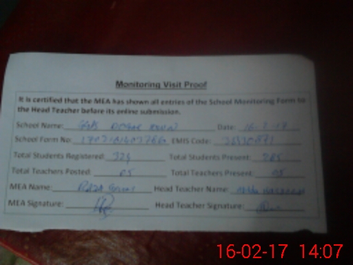 | Certified that this School was Inspected by the Undersigned MEA/DMO Today and the Information Stated Above is as Per Record. | |||||