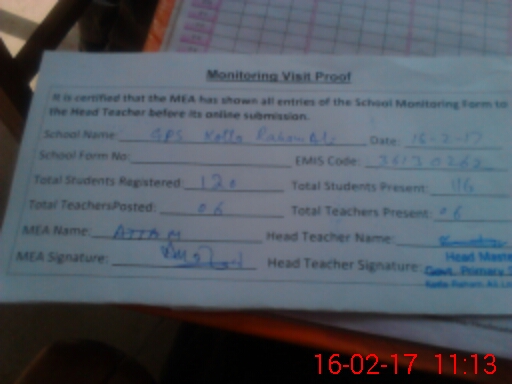 | Attendance Register | Head Teacher | MEA with School | Visit Proof |