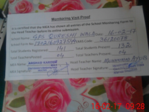 | EMIS Code: 36120078 | Name of School: GPS QURESHI WALA P.O AGHAR KHANI TEH SHUJABAD | |||