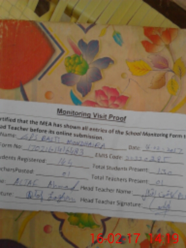 | Certified that this School was Inspected by the Undersigned MEA/DMO Today and the Information Stated Above is as Per Record. | |||||